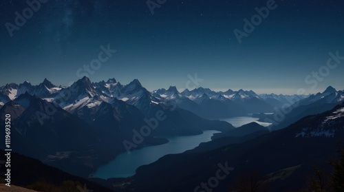 Fototapeta premium Starry Night Over Majestic Mountain Range