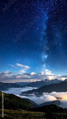 © Aldi, Fototapeta premium Starry night over misty mountains