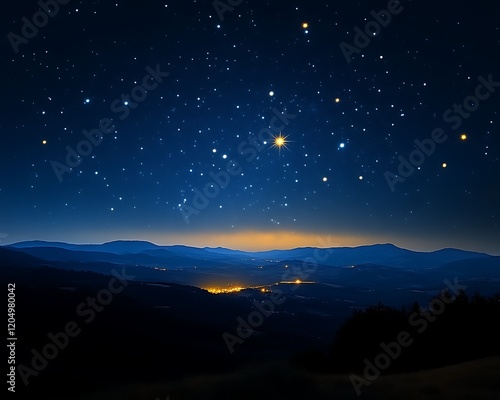 © Jangan, Fototapeta premium Starry night over mountain range.