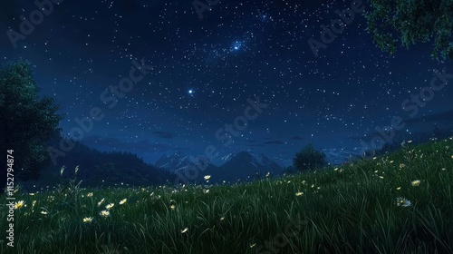 Naklejka premium Starry Night Over Peaceful Meadow