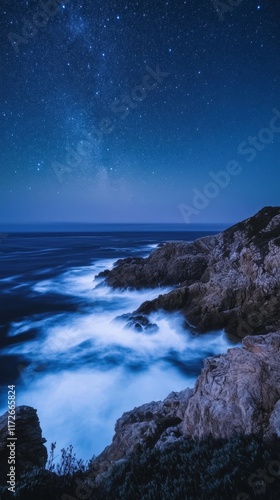 © AHNH2, Obraz premium Starry Night Over Rugged Coastline