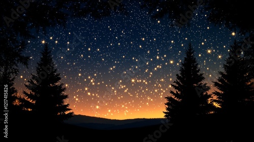 Naklejka premium Starry Night Over the Forest: Breathtaking Landscape