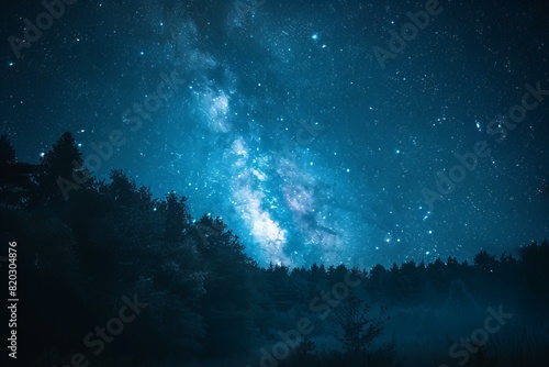Fototapeta premium Starry night sky above a distant woodland