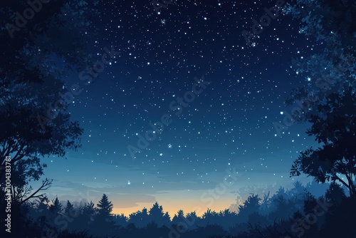 © ibhonk, Naklejka premium Starry Night Sky Above a Silhouetted Forest