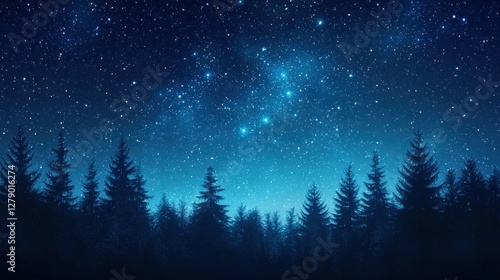 Fototapeta premium Starry night sky above a tranquil forest silhouette