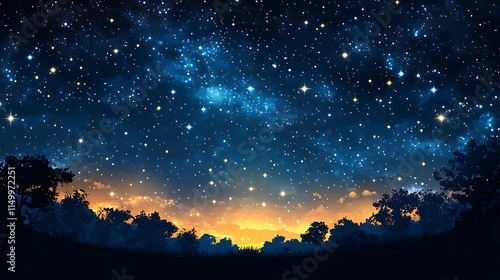 © MSH, Fototapeta premium Starry night sky background with a blue starry