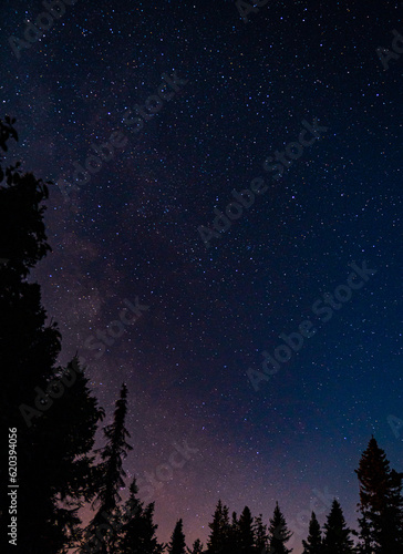 Naklejka premium starry night sky in the woods
