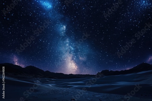 © Ali, Fototapeta premium Starry night sky over a desert landscape.