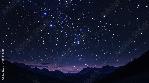 © almeera, Fototapeta premium Starry night sky over alpine mountains