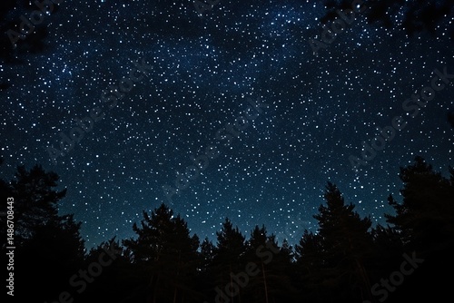 © Adriyanca, Fototapeta premium Starry night sky over dark forest