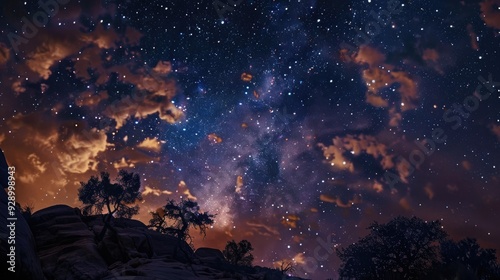© Royin, Fototapeta premium Starry Night Sky Over Desert Landscape
