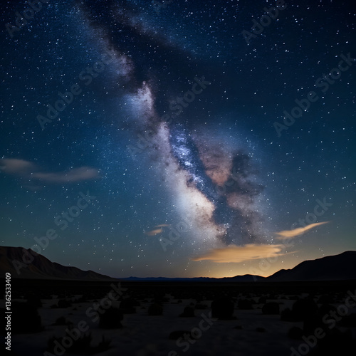 © Krzysztof, Fototapeta premium Starry Night Sky Over Desert, Milky Way Galaxy, Long Exposure Astrophotography