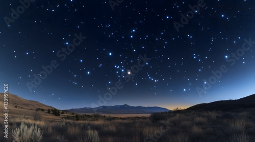 © sungedi, Fototapeta premium Starry Night Sky Over Desert Mountains Landscape