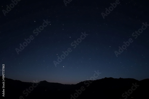 © UzzalMia, Naklejka premium Starry Night Sky Over Mountain Range Landscape Nature Scenery Stars Shining Brightly
