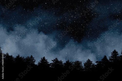 © logitech, Fototapeta premium Starry Night Sky Over Silhouetted Forest.