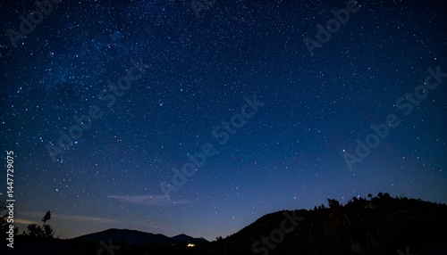 © fara, Fototapeta premium Starry Night Sky over Silhouetted Hills. Perfect for desktop backgrounds, website banners, or any project needing a celestial feel.