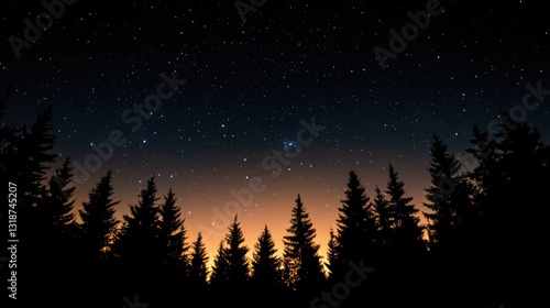 © banthita166, Fototapeta premium Starry night sky over silhouetted pine trees