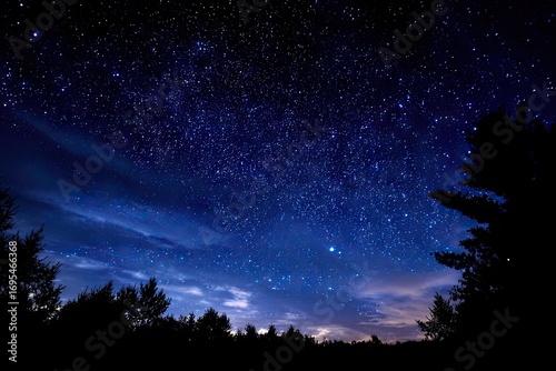 © Ione, Naklejka premium Starry night sky over silhouetted trees