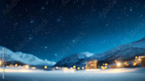Fototapeta premium Starry Night Sky Over Snowy Landscape with Glowing Lights