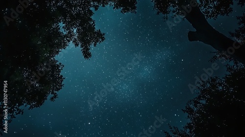 © Riya, Obraz premium starry night sky viewed through tree branches