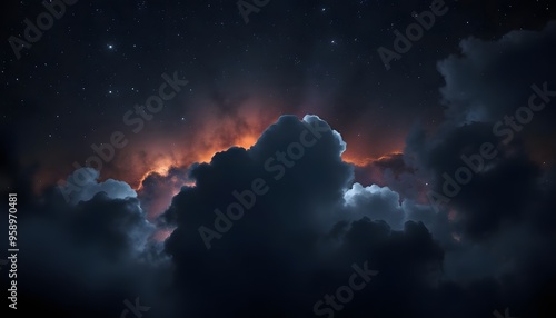 © Kdhtdg, Fototapeta premium Starry night sky with a vibrant nebula cutting through the clouds.