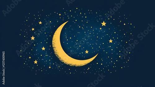 Obraz premium Starry night sky with crescent moon, peaceful night, flat design...