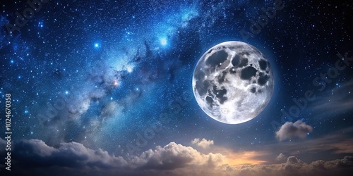 © suchetpong, Fototapeta premium Starry night sky with full moon