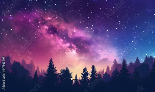 Naklejka premium Starry Night Sky with Milky Way over Forest