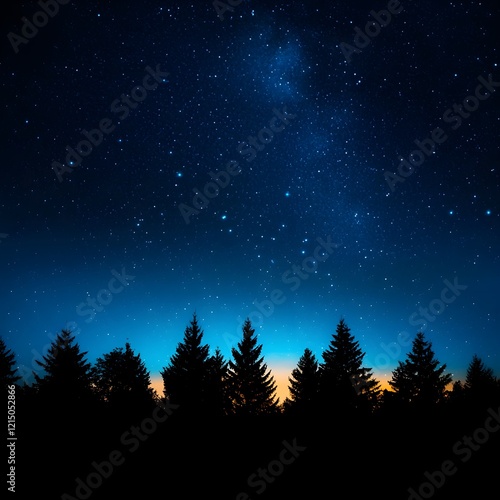 © Arthur Constantine, Fototapeta premium Starry Night Sky with Silhouette of Pine Trees in a Tranquil Setting