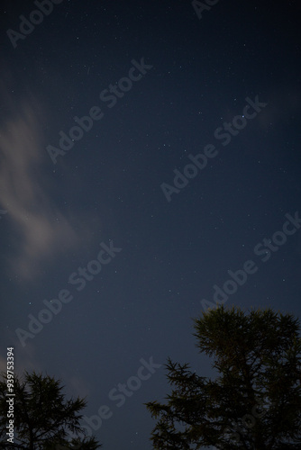 © Marina Nazina, Obraz premium Starry Night Sky with Tree Silhouette and Soft Clouds