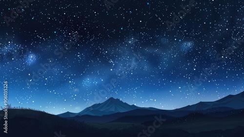 Fototapeta premium Starry Night with Mountain Silhouette Space for Text