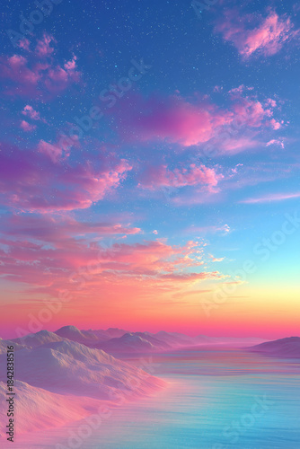 © Daria, Fototapeta premium Starry pastel sky above calm horizon