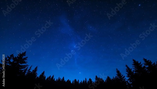 © willem, Naklejka premium Starry Sky Over Forest at Night