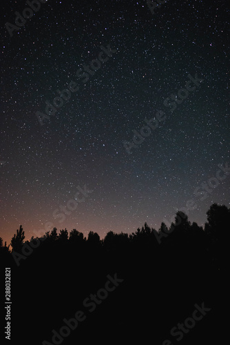© dmitriydanilov62, Fototapeta premium Starry sky over the forest and flying meteor summer night