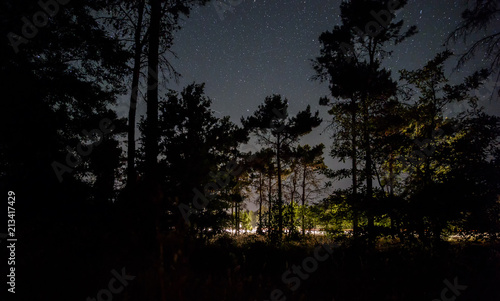 © alexmu, Fototapeta premium Starry sky over the forest and road