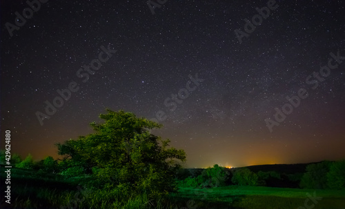 Fototapeta premium starry sky over the green fields, night countryside scene