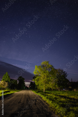 © dmitriydanilov62, Fototapeta premium Starry sky over the road in the village