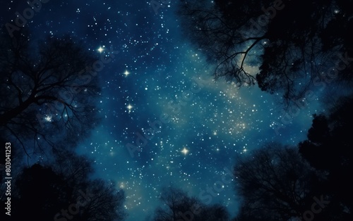 Obraz premium Starry Sky Through Silhouetted Trees