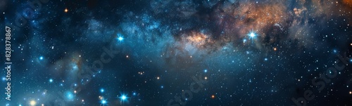 Obraz premium Starry sky with a cluster of stars and a bright blue nebula