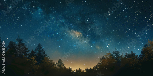 © Planetz, Obraz premium Starry sky with trees background, banner