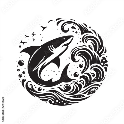 © Vista, Naklejka premium Starry Sleuth: Shark Silhouette on a Celestial Quest - Shark Black Vector Stock