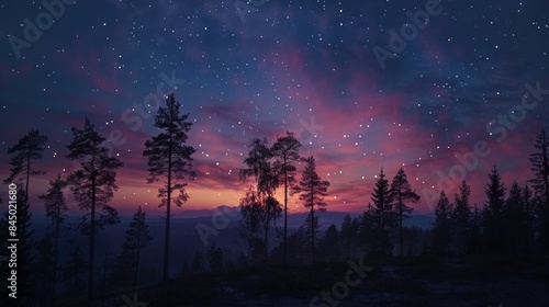 © jirayut, Fototapeta premium Starry Twilight Over a Forest