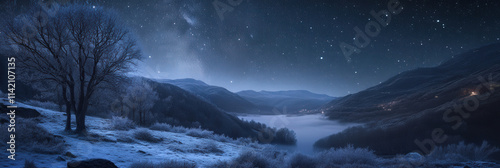 © Matija, Naklejka premium Starry Winter Night in the Mountains