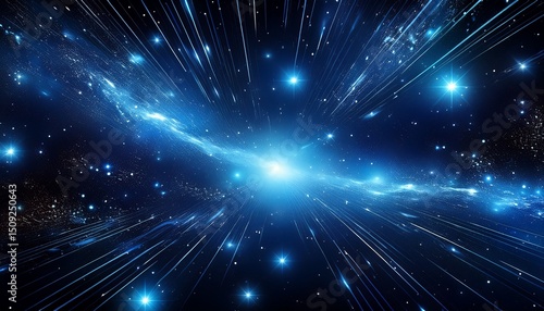 © Stella, Fototapeta premium stars and blue light glowing through the darkness of deep space