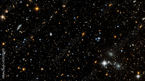 © TheseusStock, Fototapeta premium Stars and galaxy outer space sky night universe black starry background of shiny starfield