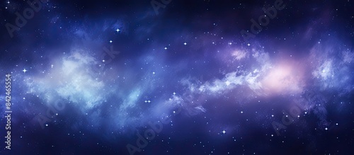 Obraz premium Stars and star clusters sparkle gracefully under the captivating Milky Way Galaxy, creating a mesmerizing scene with copy space image.