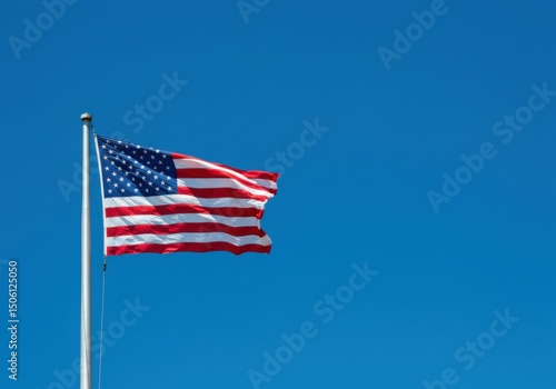 Fototapeta premium Stars and stripes of the USA flag set against a sunny blue sky