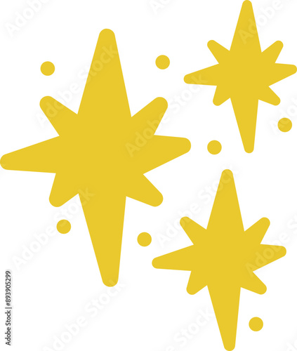 © Dottie Digitals, Obraz premium Stars Doodle, Star Hand Drawn Illustration Golden Yellow