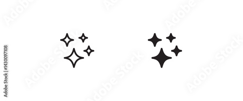 © Aygun, Naklejka premium Stars line icons set. Starry night, falling star, firework, twinkle, glow, Clean shining.Sparkle line icons set, editable stroke isolated on white, linear vector outline illustration, symbol logo
