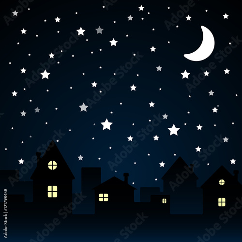 © corben_dallas, Fototapeta premium Stars, Sky, Night. Silhouette of the City. Moon.